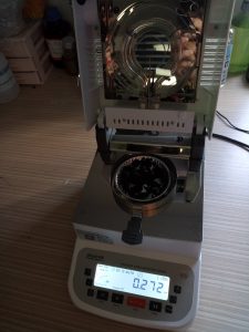 3、平衡后將樣品瓶移出,取出樣品,用電子天平稱取樣品置于樣品瓶內(nèi),然后在水分儀上點擊開始測量,同時將樣品瓶裝入加熱槽。