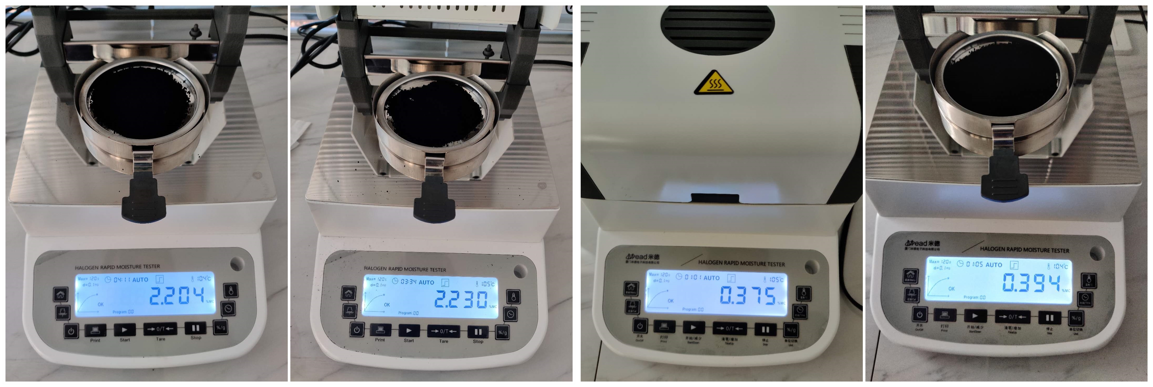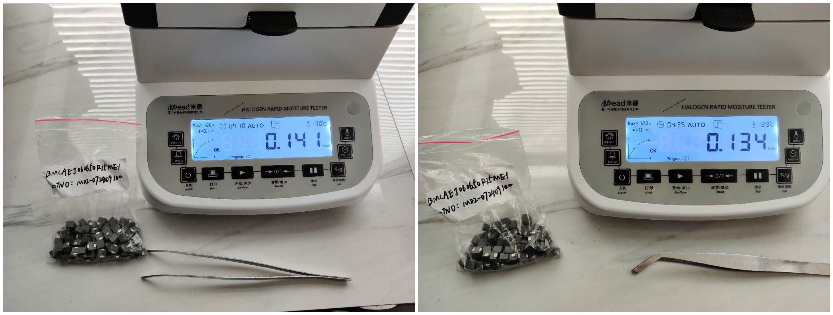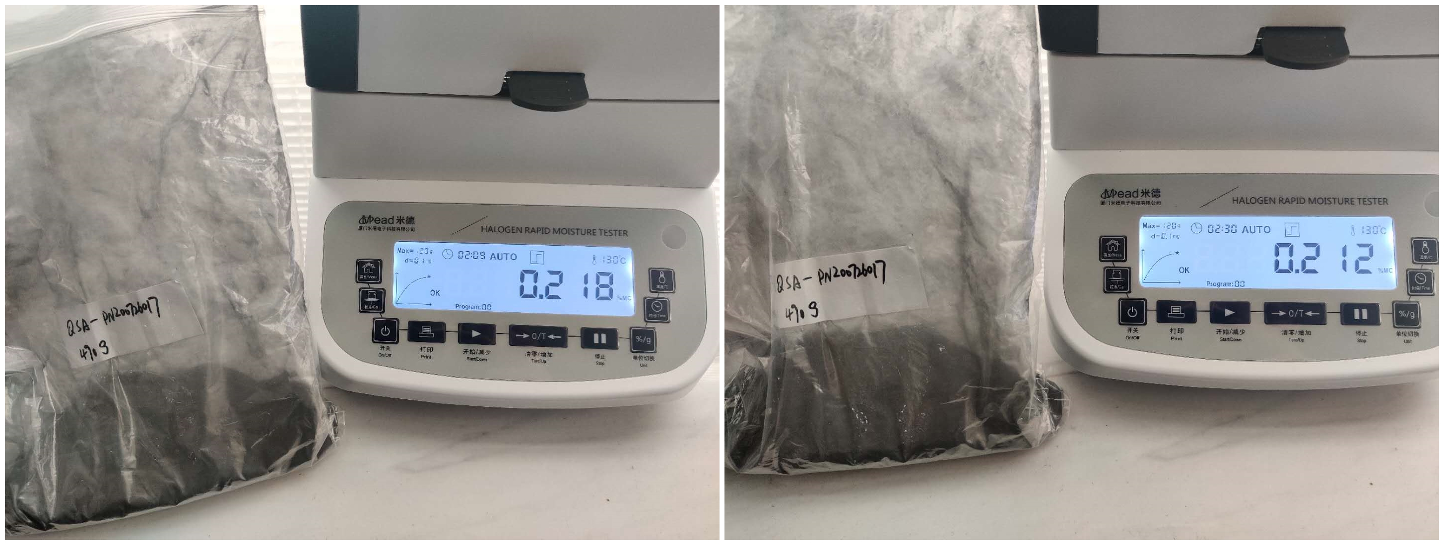 測(cè)試儀器:米德QL-720D(稱重精度0.001g,水分解析0.001%)