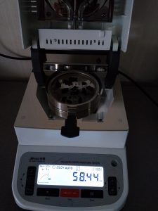 為了得到更精確穩(wěn)定的數(shù)據(jù)結(jié)梅,在進(jìn)行第二次測(cè)試過程前先等待話梅干水分儀降溫,待儀器本身溫度降至40度以下時(shí),同樣取3克話梅干碎于不銹鋼托盤中,將話梅干碎平鋪均勻,這次我們把溫度設(shè)定在160℃,按“START”鍵開始測(cè)試,30分08秒后檢測(cè)結(jié)束,檢測(cè)數(shù)據(jù)顯示58.82%;