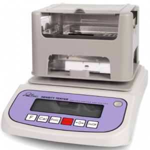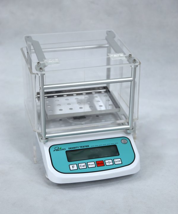 ②將樣品完全浸入水中,測水中重量,按M鍵記憶,直接顯示密度值。