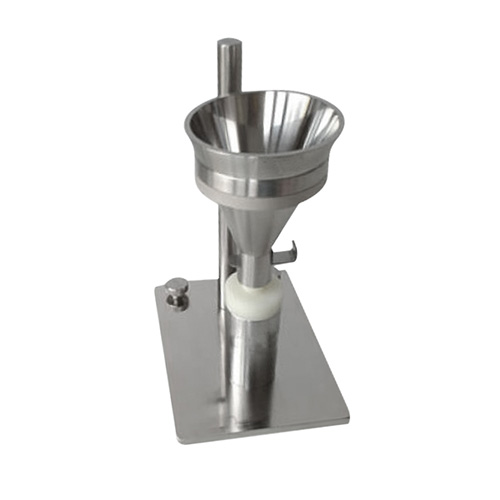 A型漏斗要求: Apparatus for Apparent Density Test, Method A 漏斗上出口直徑:9.3cm 下出口直徑:0.95±0.08cm 漏斗高度:11.4cm 漏斗材質(zhì)要為不銹鋼316SS。 漏斗容積:400ml以上 量杯口與漏斗下出口的高度為:3.8cm; 量杯:高度7.98cm、直徑3.99cm; 配置附件:毛? 刷1只;鋼尺15cm1把、說(shuō)明書、保修卡、合格證 | 漏斗的高度:24±0.1cm; 漏斗與量杯的高度:3.8cm; 漏斗下出口:2.54cm±0.16cm; 漏斗上開口:12.7±1.0cm; 量杯的容積:400ml±2.0ml; 角度:24度; 材質(zhì):不銹鋼材質(zhì); 配置附件:毛? 刷1只;鋼尺15cm1把說(shuō)明書;保修卡;合格證。